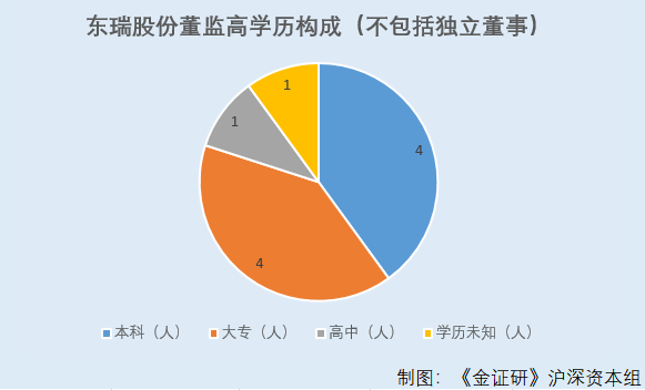 经《金证研》沪深资本组统计,除独立董事外,东瑞股份的董事、监事、高级管理人员共计10人;其中,4人为本科学历,4人为大专学历,1人为高中学历,另有1人学历未知。