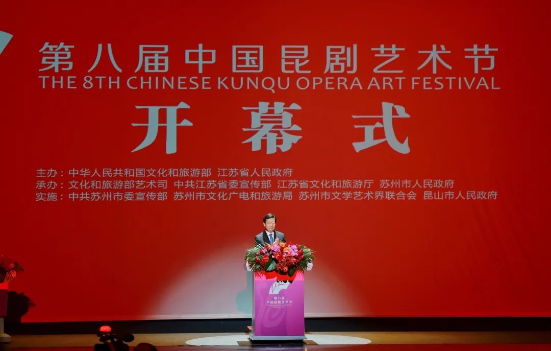 文化和旅游部党组成员、副部长,国家文物局党组书记、局长李群,江苏省人民政府副省长马欣,文化和旅游部艺术司司长明文军,苏州市委副书记、代市长吴庆文,以及北京市等省级文化和旅游行政部门负责人、昆剧院团代表等出席开幕式。江苏省文化和旅游厅党组书记、厅长杨志纯主持开幕式。开幕式上演出了江苏省演艺集团昆剧院的原创现代昆剧《瞿秋白》。