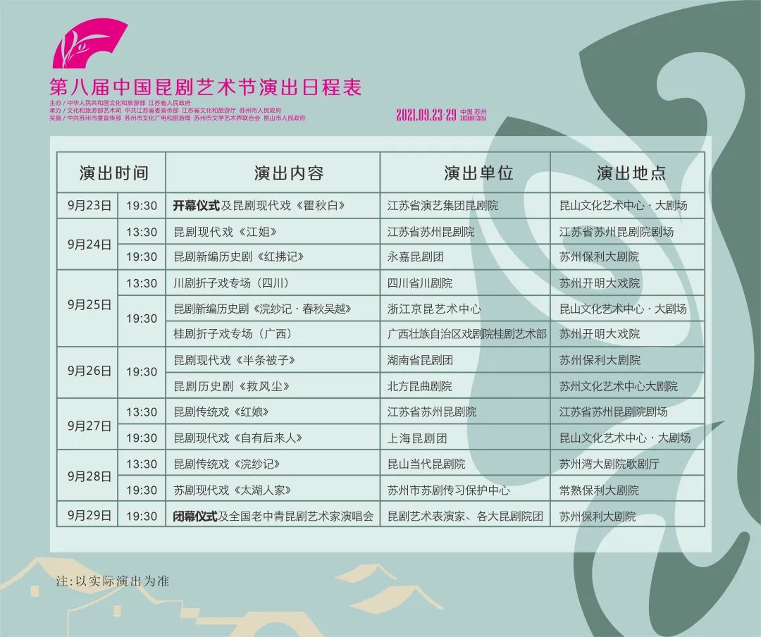 由中华人民共和国文化和旅游部、江苏省人民政府共同主办的第八届中国昆剧艺术节,9月23日晚19:30在昆山文化艺术中心大剧院隆重开幕。
