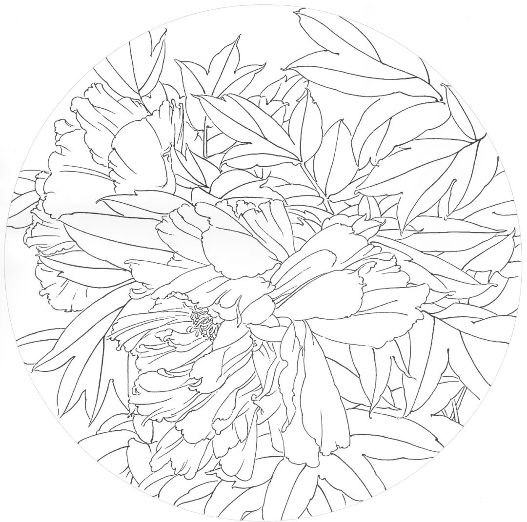 用淡墨勾花瓣,中墨勾花蕊。(为方便观赏,此处均用重墨印出。)