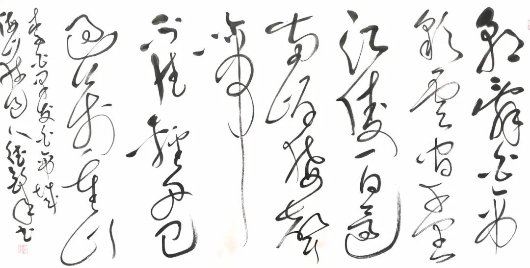 两年前,笔者在西安贾平凹文学艺术馆参加了马河声的书画展,满壁淋漓,气象万千,书风激荡,豪气干云,让笔者倍为感动。尤其是他的笔下没有全国书法展的那种展览气,完全是个性发挥,功底深厚,无拘无束。他16岁独闯西安,那么多的院校他从没有进去,但就是凭着自学,走出了自己的路。
